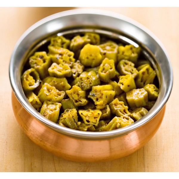 Finely chopped okra cooked with garlic and a special mix of spice